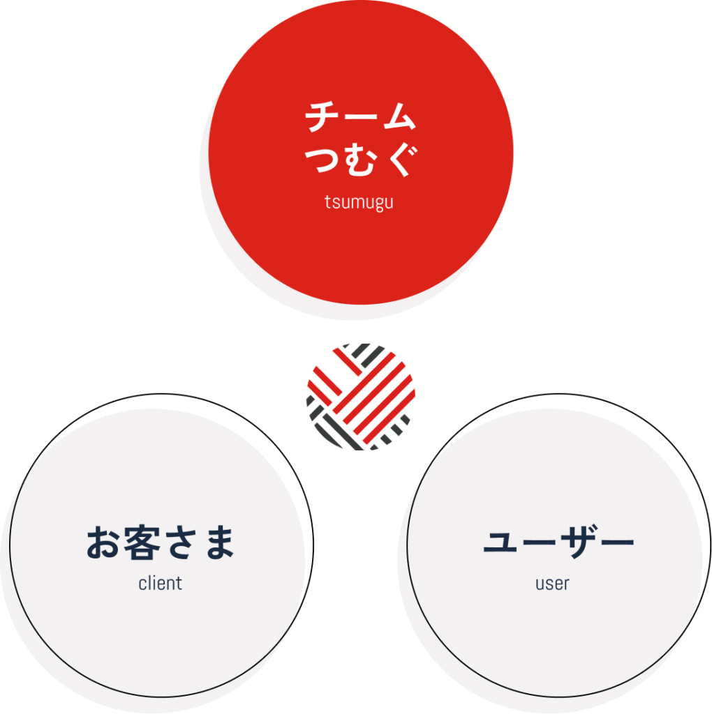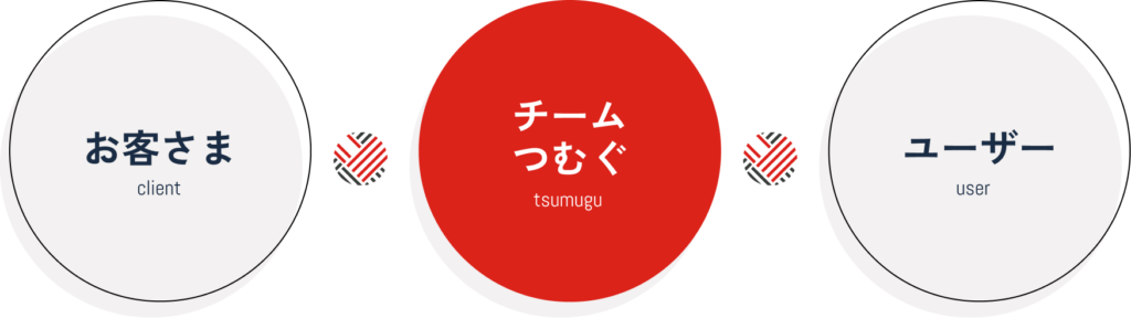 「つむぐ」とお客様が1つのチームとなって、ユーザーに役立つサービス・コンテンツを作り出していきます。