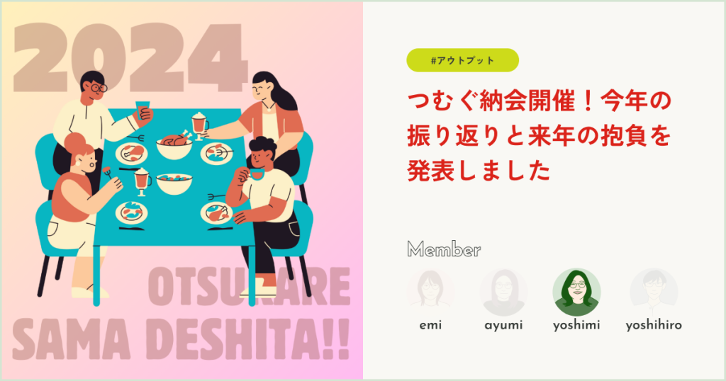 つむぐは「完成したらあとは朽ちていくだけ」の考えのもと、学ぶことをやめません。メンバーの日々の活動やインプットの過程を公開しています。