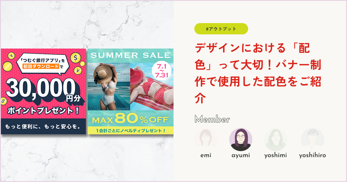 2024年7月現在、メンバーのえみさんと1ヶ月間毎日バナーを投稿する「#つむぐ1ヶ月チャレンジ」を開催中です!笑 その中で制作したバナーの配色について一部ご紹介したいと思います。