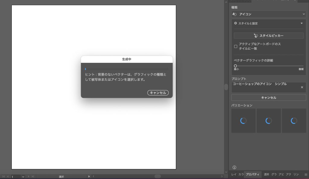 - 1.「テキストからベクター生成(Beta)」パネルを表示する。