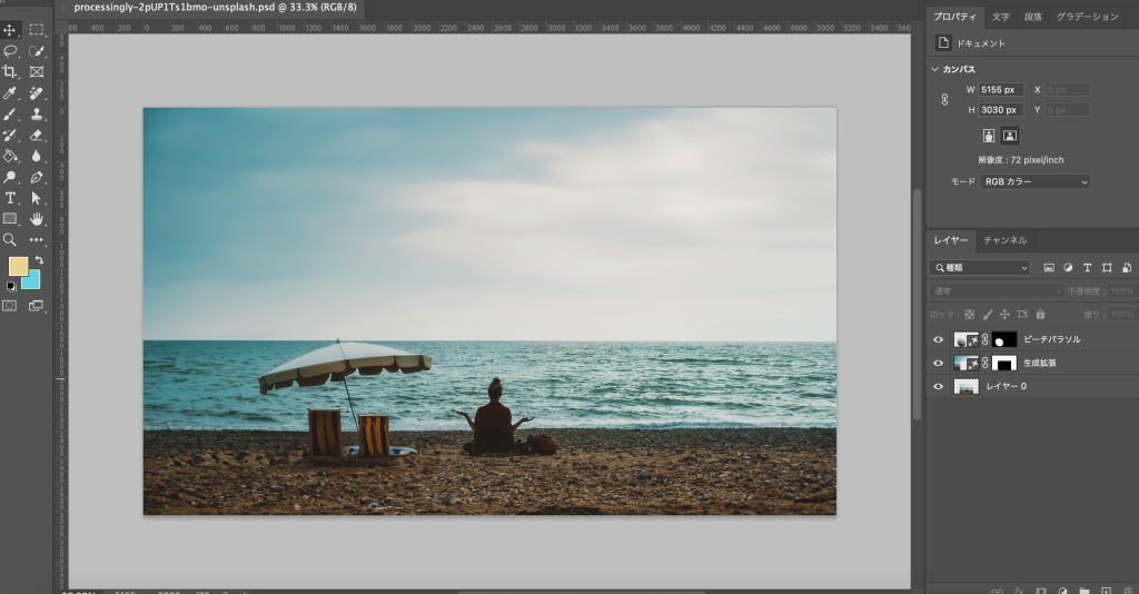 例えば先ほど背景を拡張した画像上に、ビーチパラソルを立てたい!など他の画像を合成したい場合に便利な機能です。
