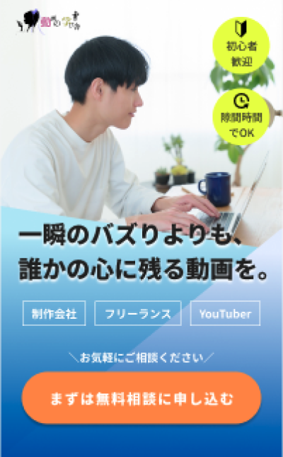 動画編集スクール「動画の学び舎」LP/バナー制作コンペティション大会